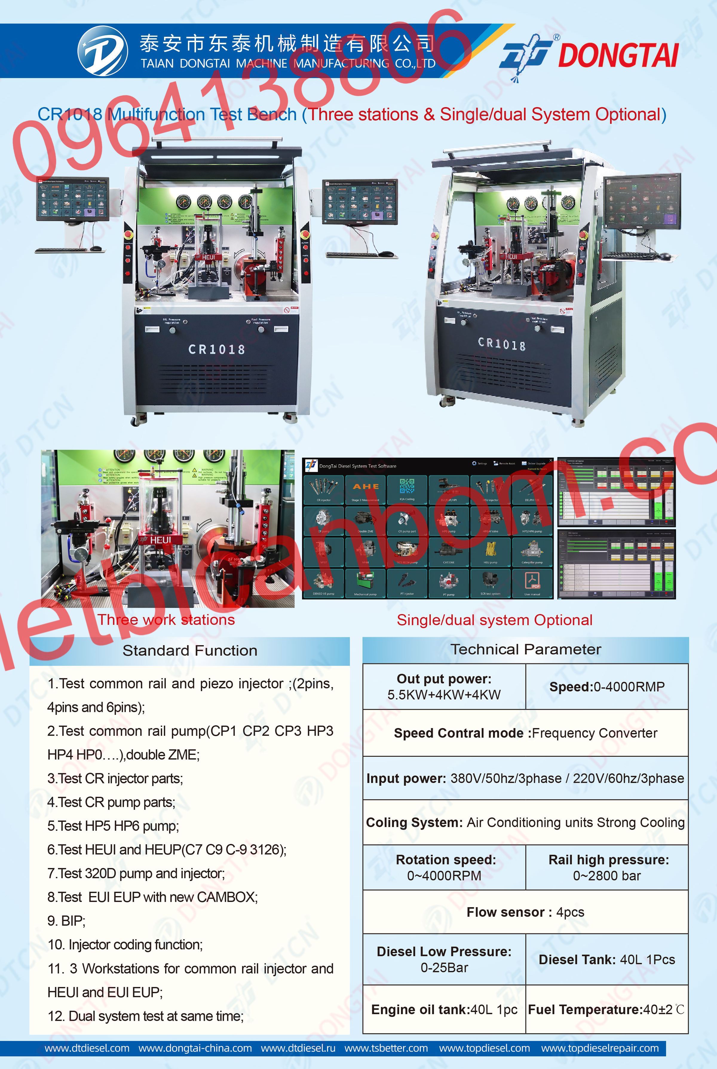 7. Tự động kiểm tra rò rỉ, tải đầy , không tải, phun trước và tốc độ trung bình của kim phun common rail.